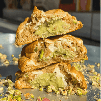 Suave y rellena con crema, trozos de pistacho y trocitos de chocolate blanco.